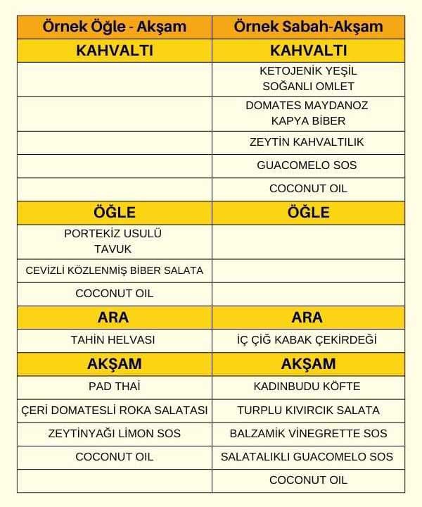 Aralıklı Oruç IF Ketojenik Paket Örnek Menü