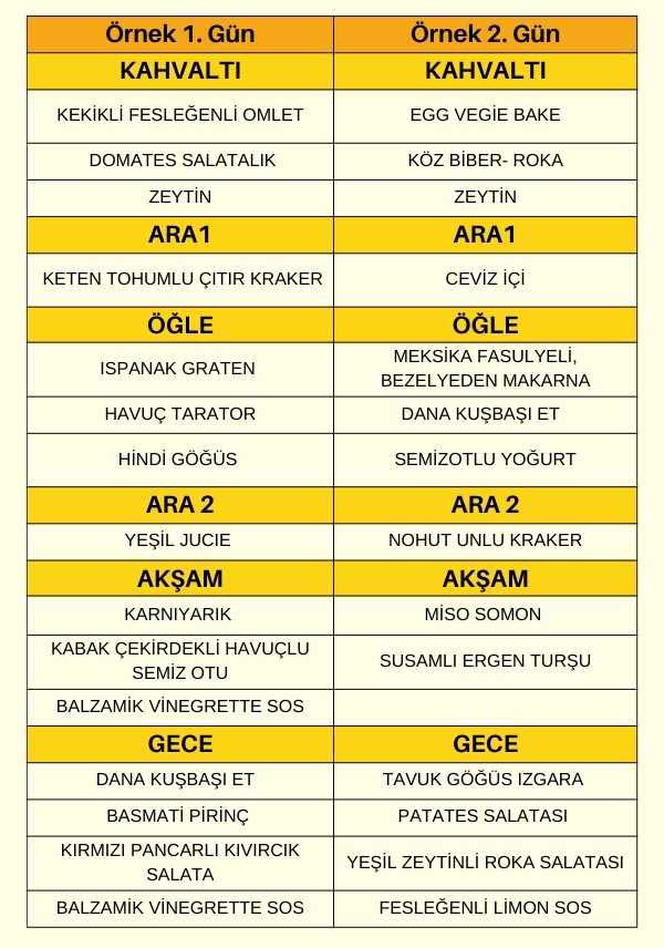 4 ana öğün ve 2 ara öğünden oluşan bu paket, kadın ve erkek porsiyonlarına özel olarak planlanır.