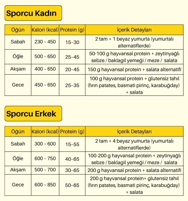 Erkek porsiyonlarında günlük toplam enerji alımı: 2500–3000 kcal