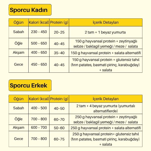 Erkek porsiyonlarında günlük toplam enerji alımı: 2500–3000 kcal